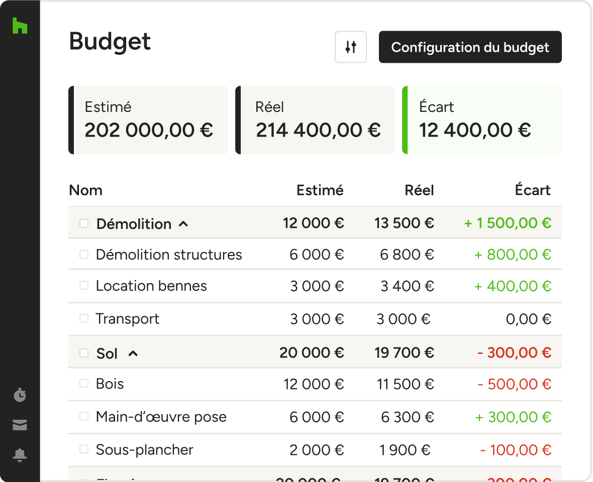- Centralisation des documents : Accédez à vos plans, devis et factures en un seul endroit.