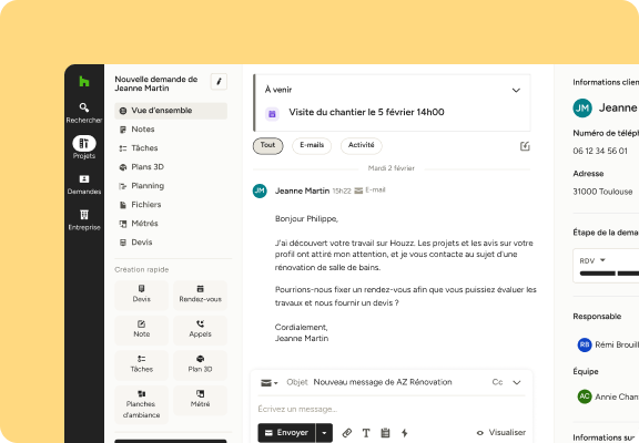 Invitez vos employés, sous-traitants et fournisseurs à collaborer sur Houzz Pro. Définissez des autorisations et donnez-leur accès à vos projets.