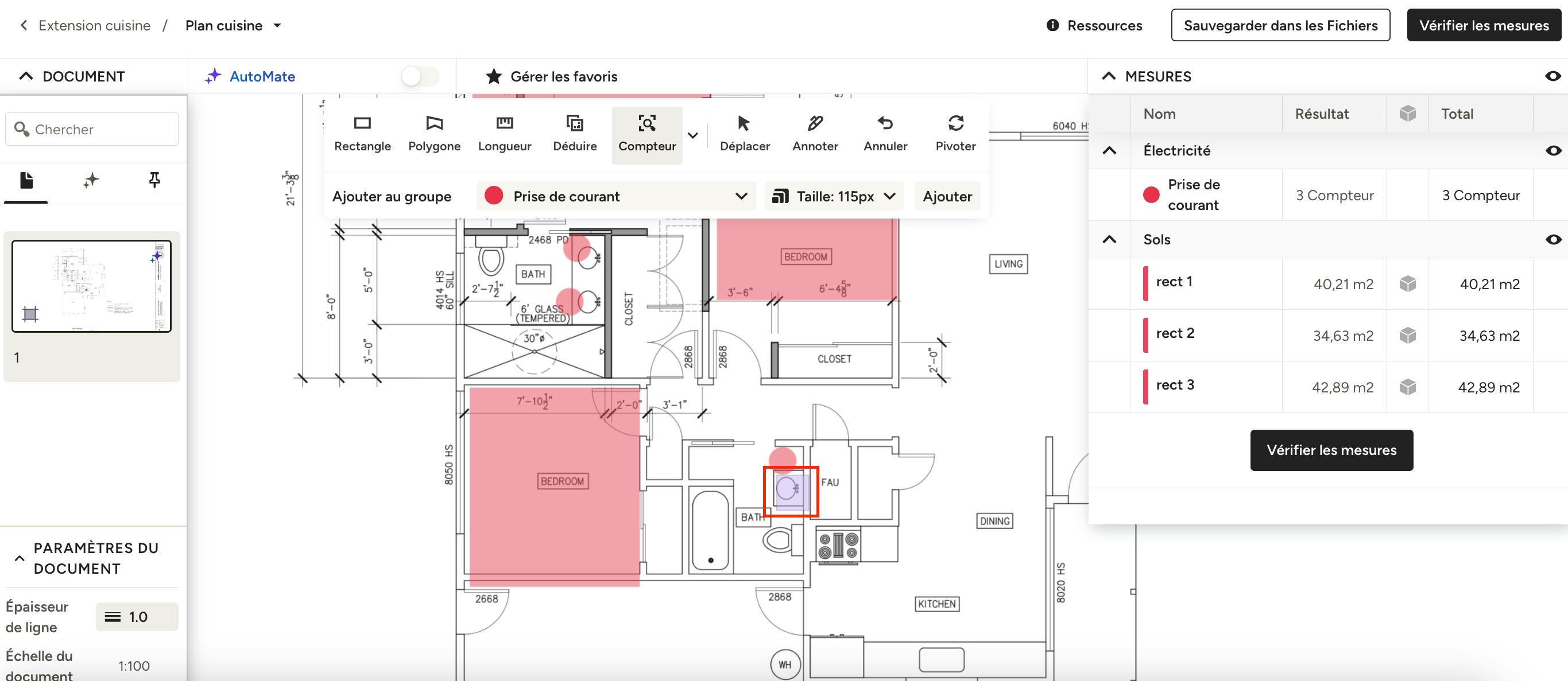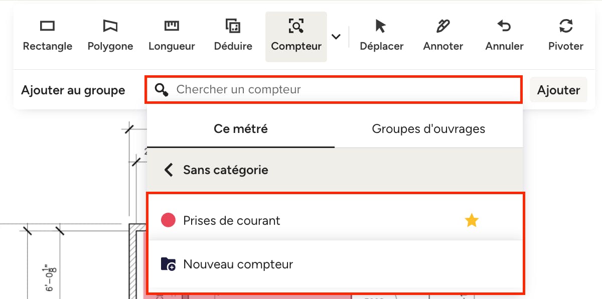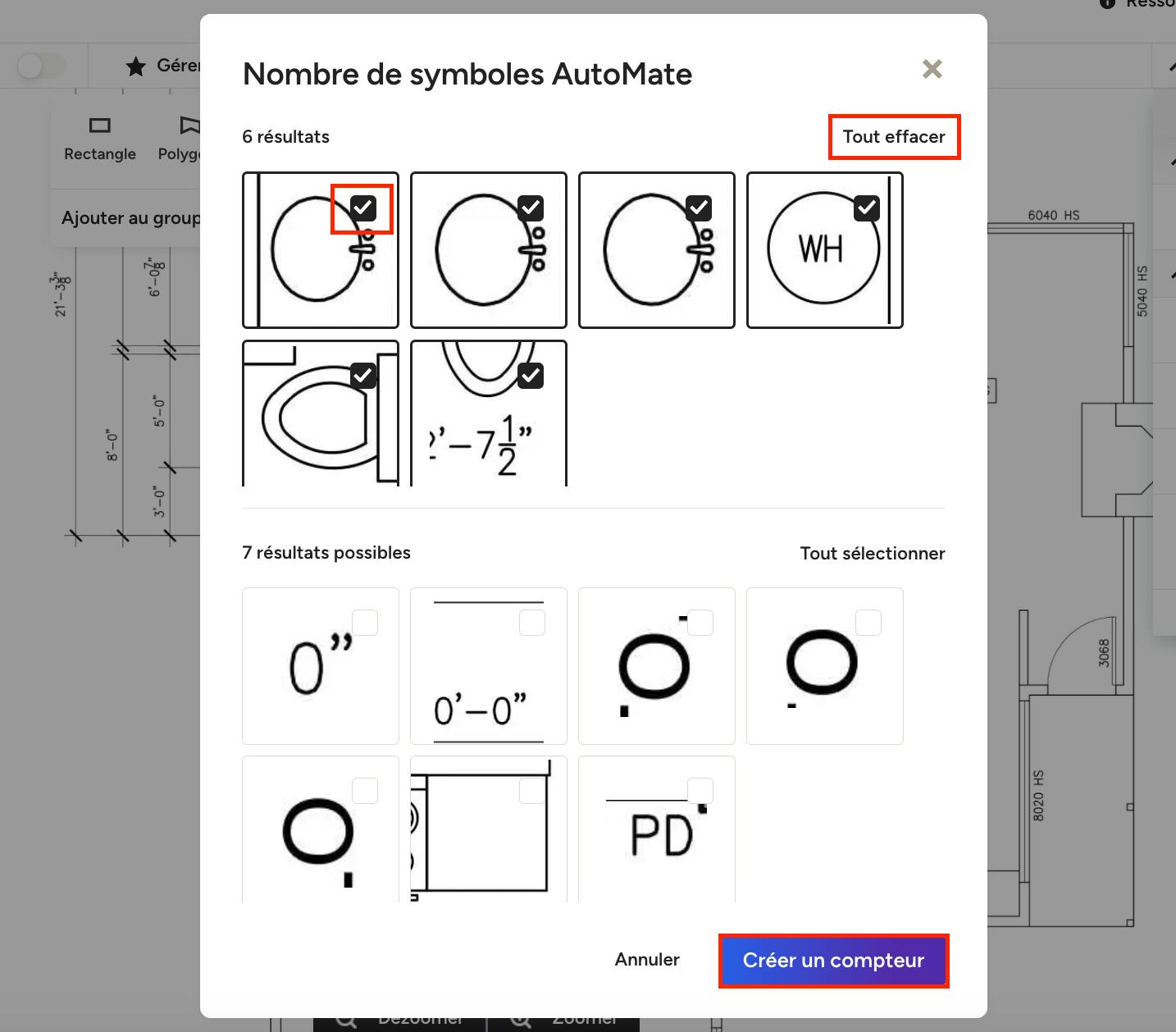 Ensuite, dessinez un cadre ajusté directement sur le plan autour du symbole que vous souhaitez compter.
