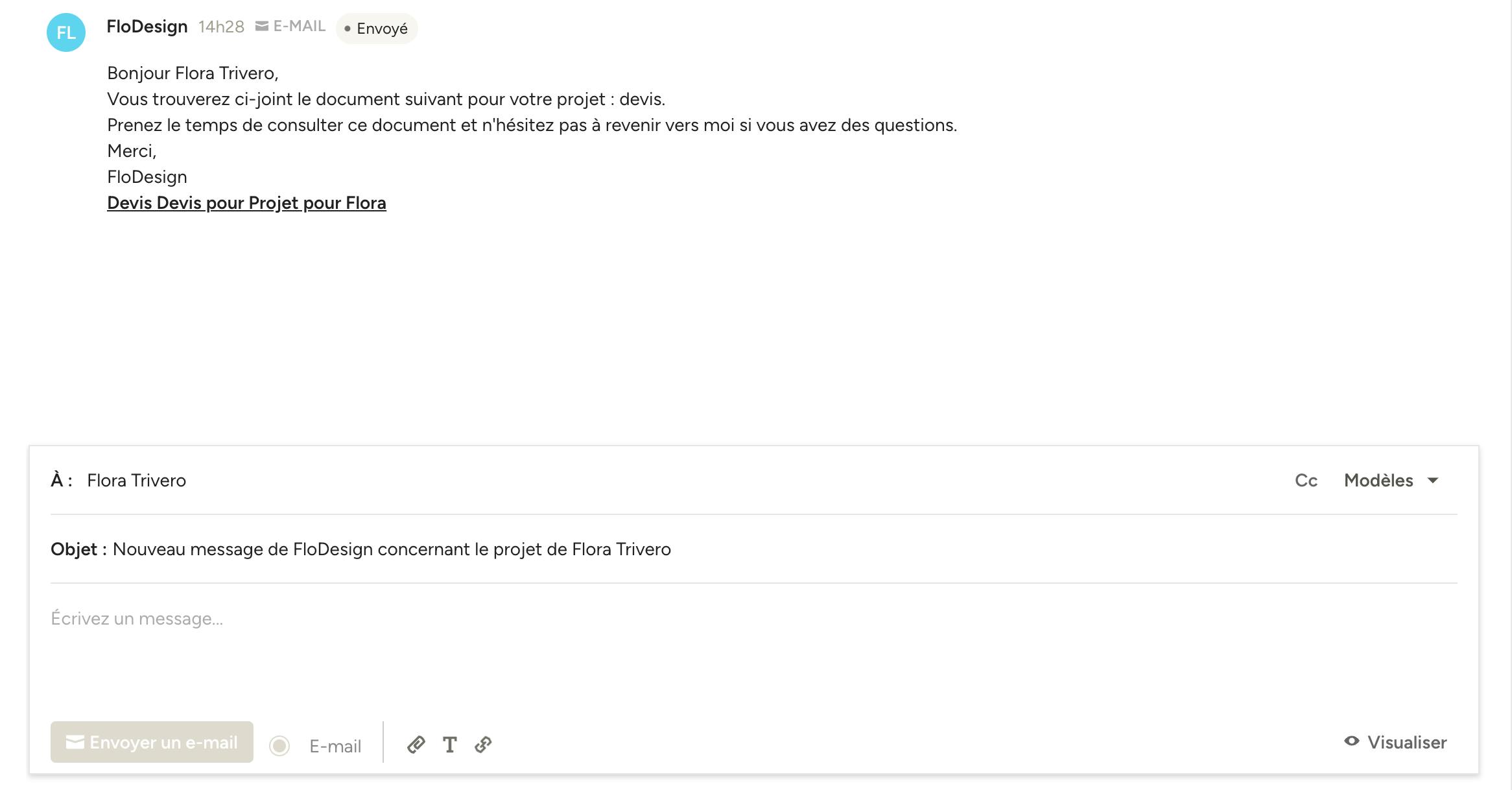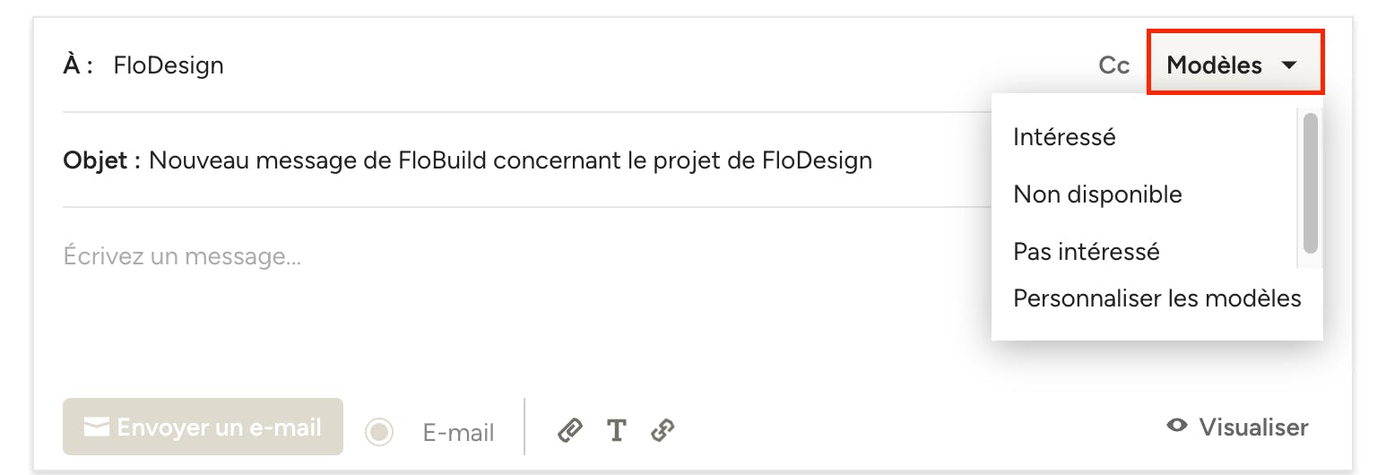 Si vous souhaitez gagner du temps, vous pouvez facilement créer des modèles de messages personnalisés qui s'appliqueront à la fois aux prospects et aux clients.