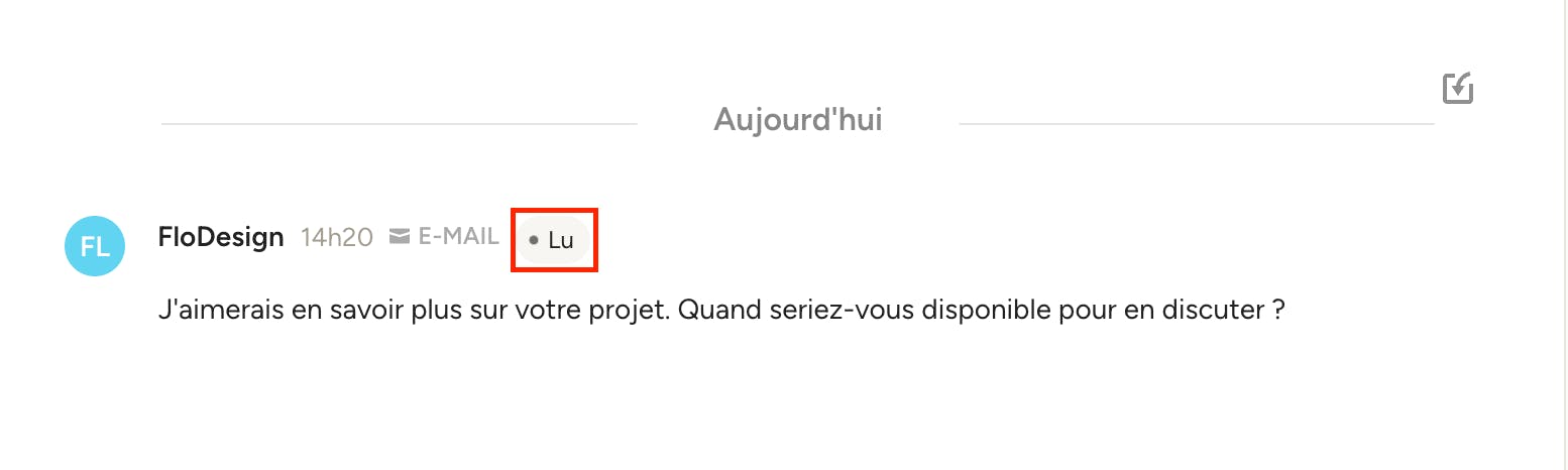 Une fois votre e-mail envoyé, votre prospect recevra le message et pourra y répondre directement depuis son compte e-mail. Sa réponse vous parviendra à la fois dans la section « Messages » et sous la forme d'une notification par e-mail. Dans la section « Messages », vous pouvez également consulter le statut d'un message - s'il a été transmis ou s'il a été lu par le client potentiel.