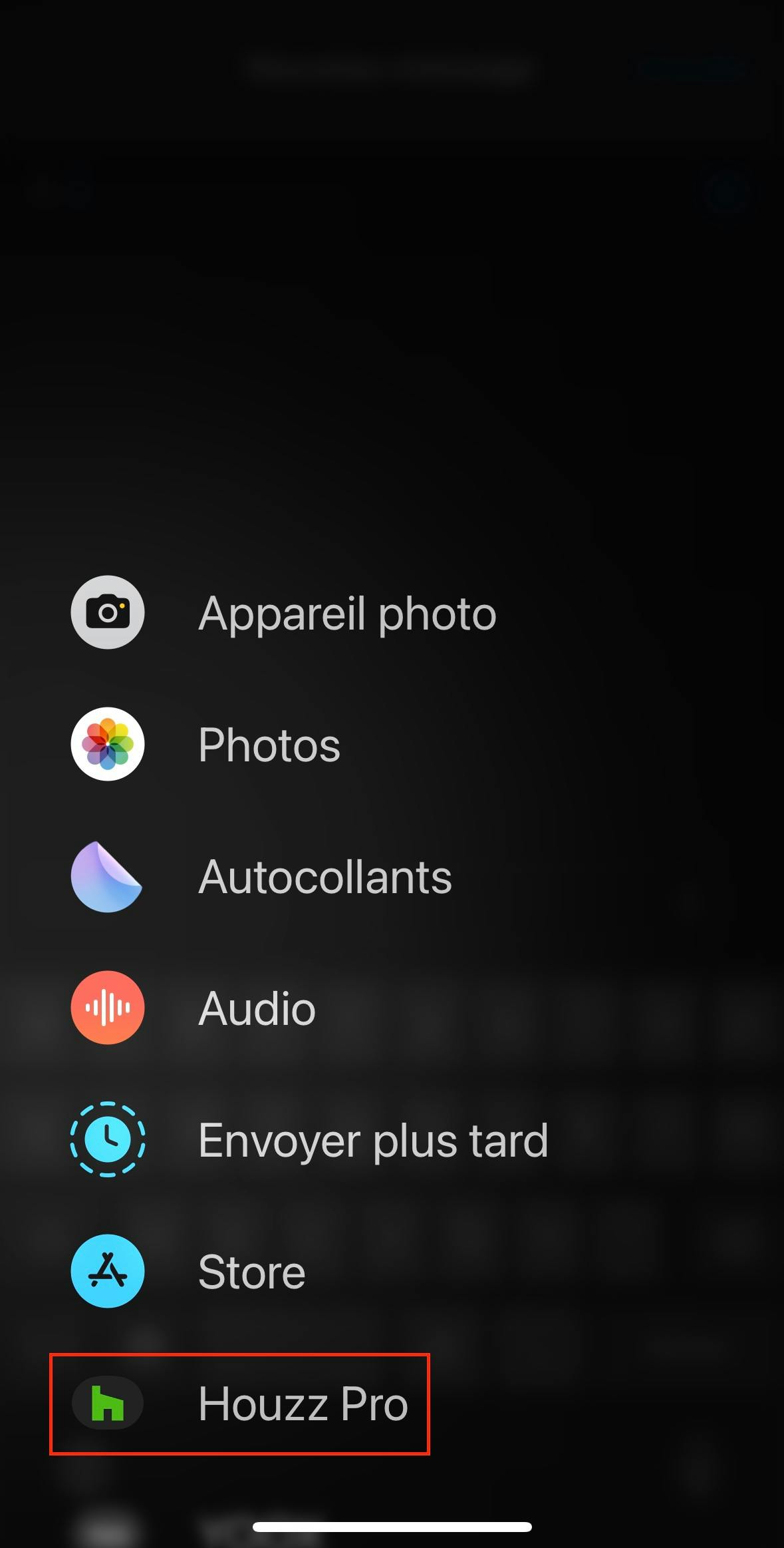 Sélectionnez ensuite « Houzz Pro » dans le menu qui s'affiche.